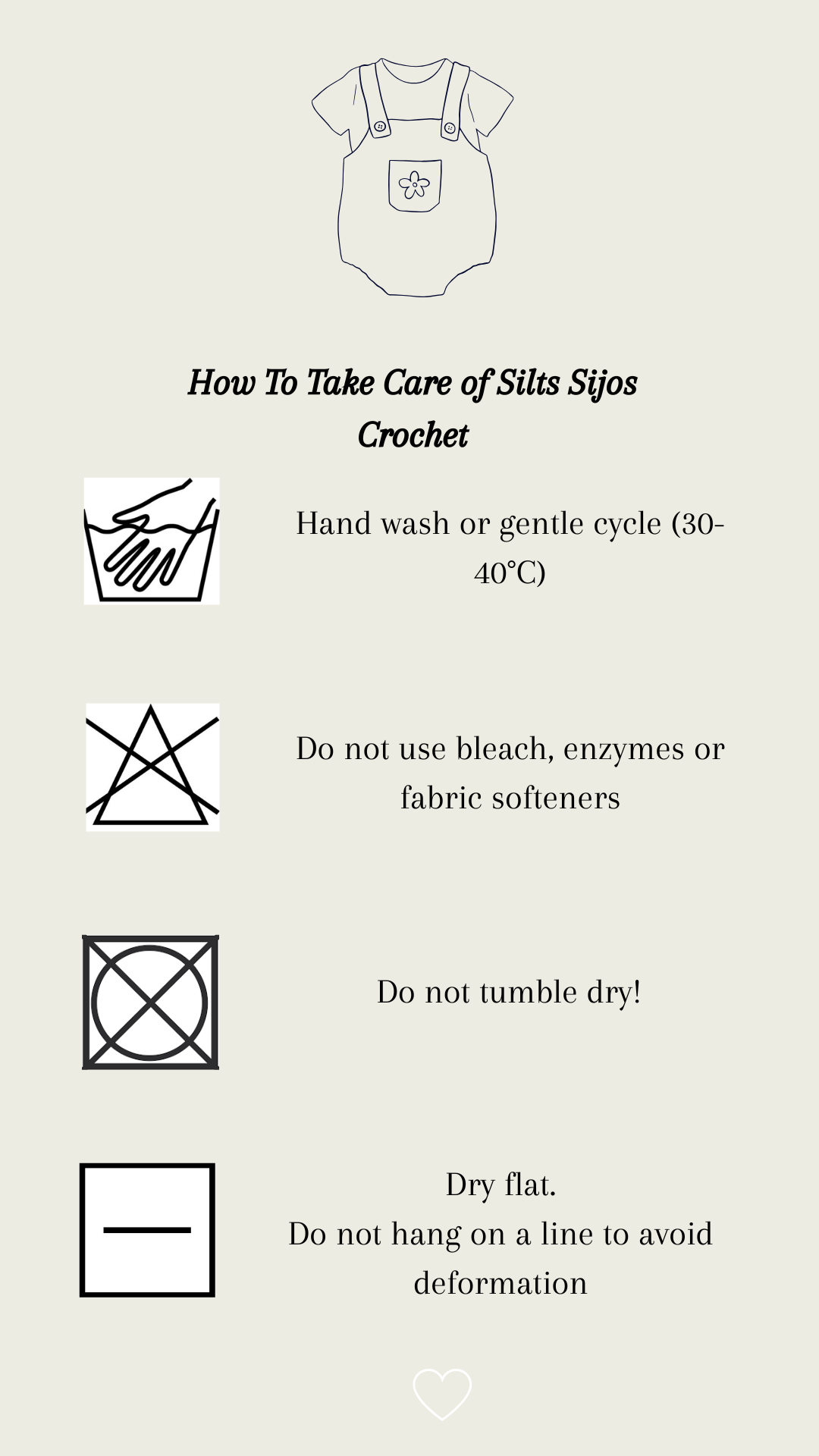 This is a detailed instruction on how to take care of your Siltos Sijos crochets