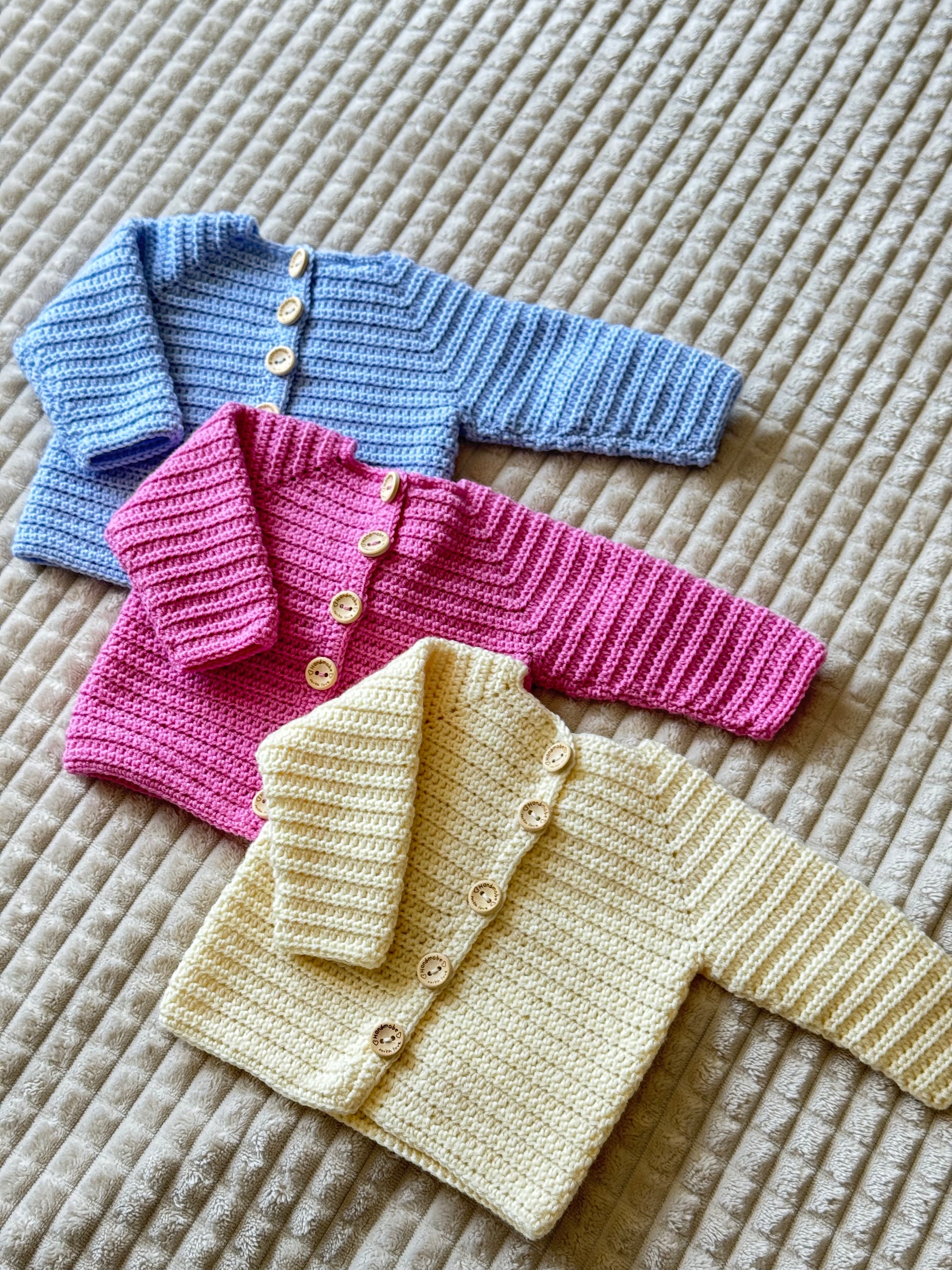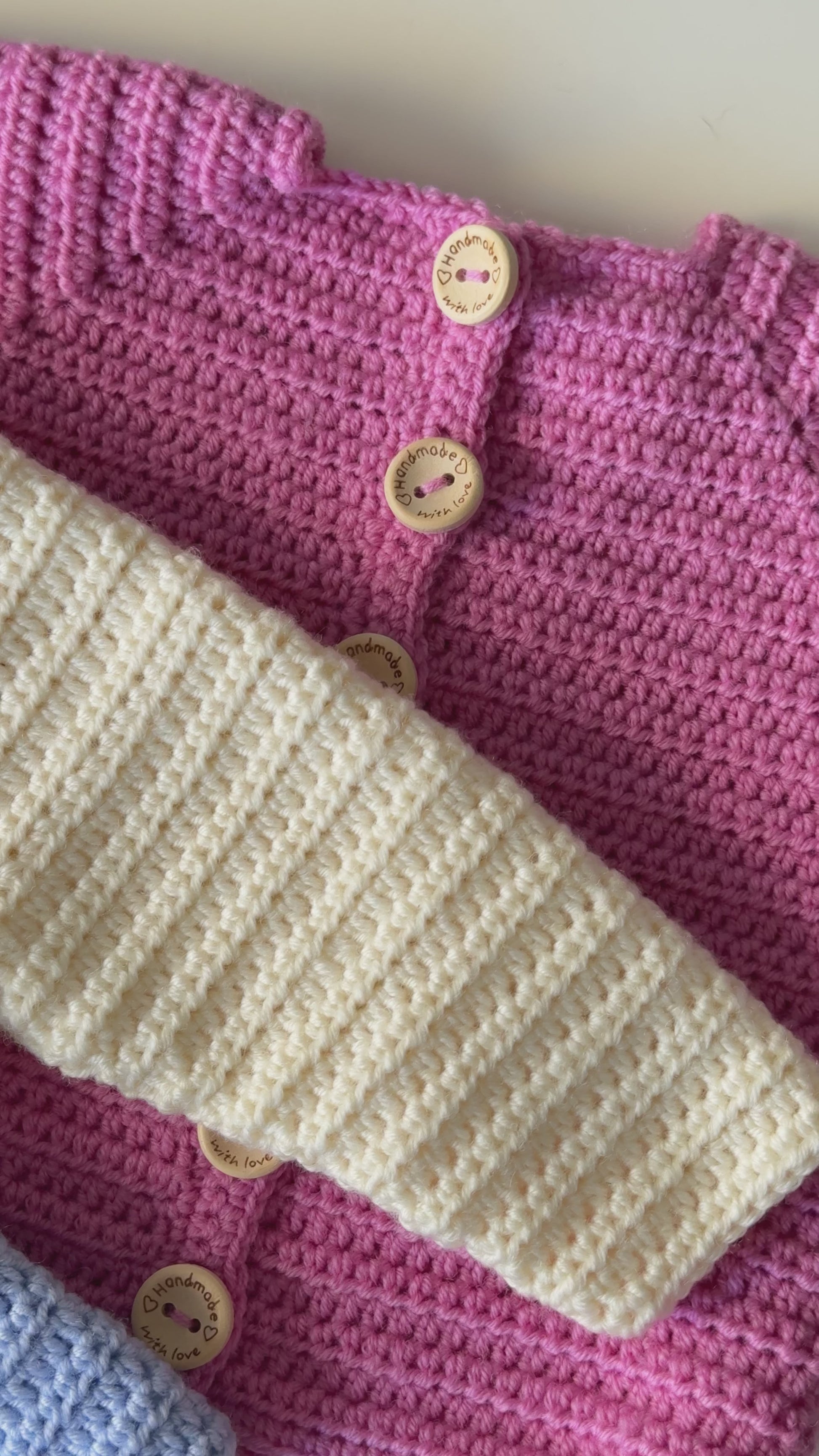 Each cardigan is thoughtfully handcrafted and fully customizable to reflect your baby's unique style.